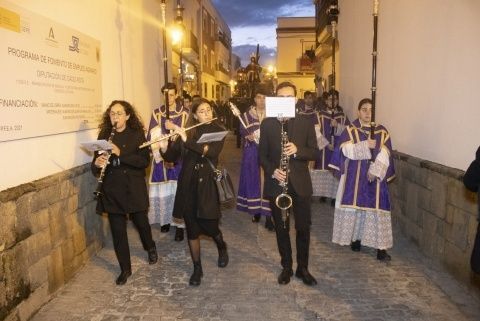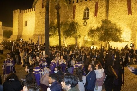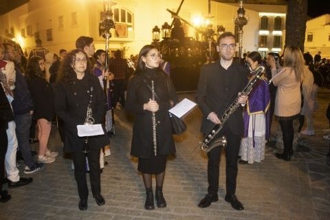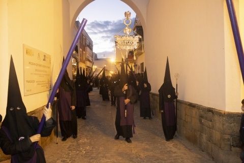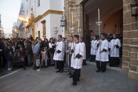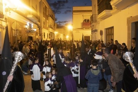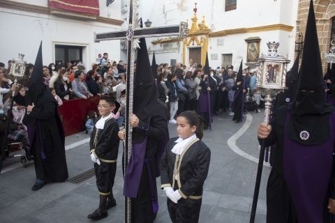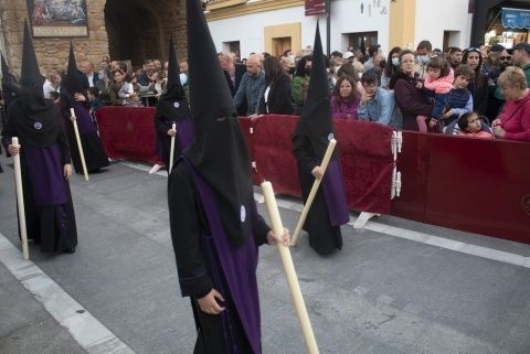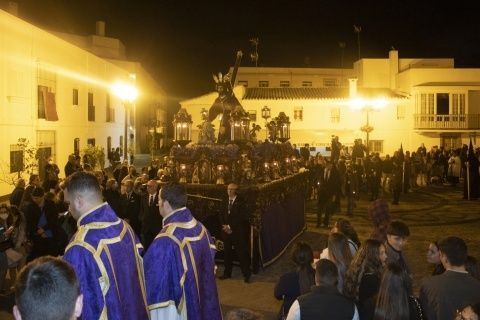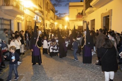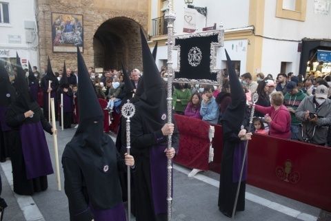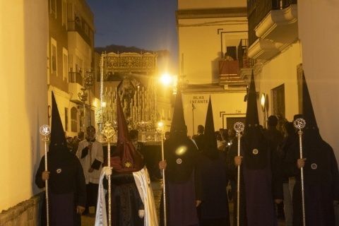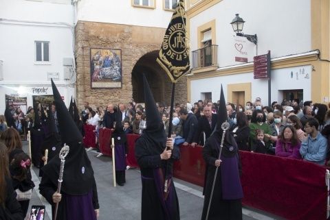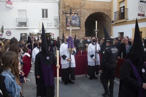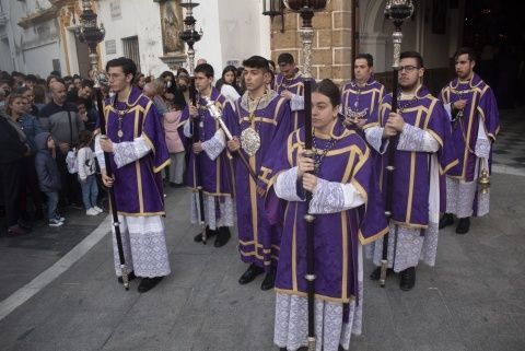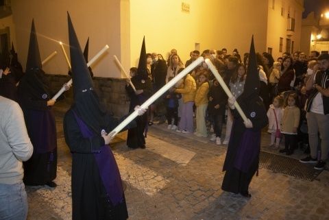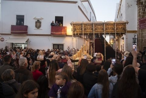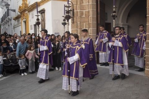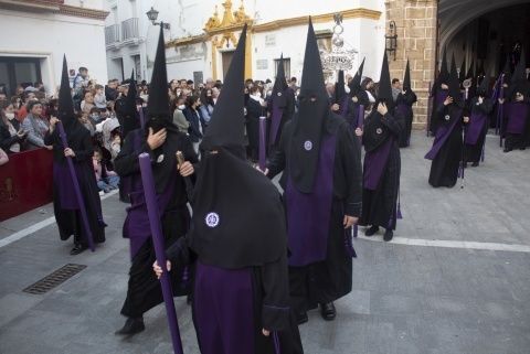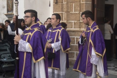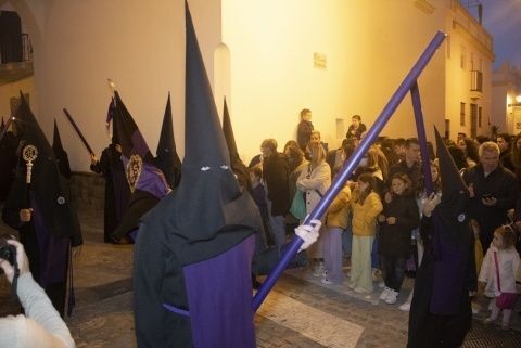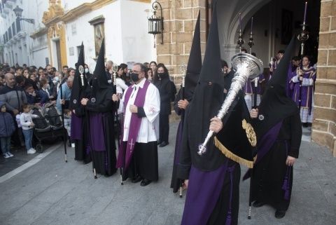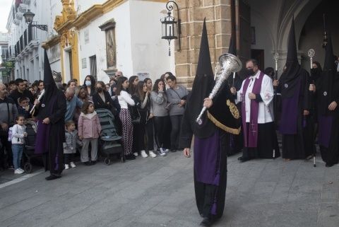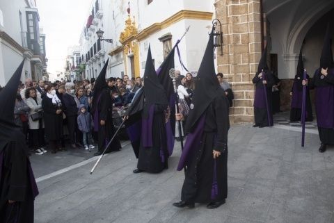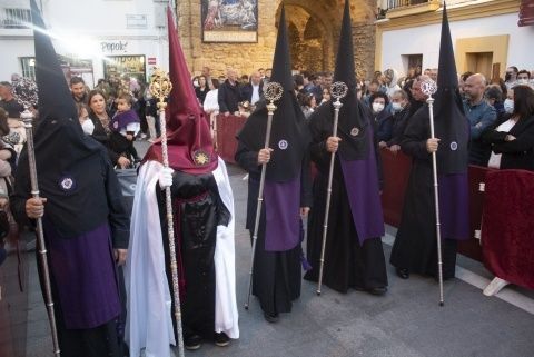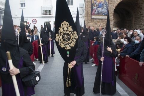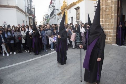 Desde 1961, el Miércoles Santo en Rota lleva el nombre de la Salud aunque la talla que ayer muchos roteños y turistas pudieron ver por las calles de la villa data de 1962, saliendo del taller de Luis Ortega Brú un año después de aquella primera salida procesional. Junto a Nuestra Señora de la Caridad, imagen de 1984 a la que acompaña San Juan Evangelista desde 2004, esta hermandad siembra las calles a su paso de luto y recogimiento. Es la seña de identidad de esta cofradía que desde hace años, tiene unas normas de comportamiento muy marcadas en el cortejo de modo que se exige a sus hermanos penitentes que la sobriedad que se intenta impregnar con el paso de estos titulares sea palpable en todos los sentidos de la estación de penitencia. Una vez más, en términos generales, así fue, y el Miércoles Santo destacó por las marchas fúnebres dedicadas por la banda municipal de música "Maestro Enrique Galán", por el andar sobrio de los pasos guiados por Joaquín Bandarra Martínez y por Manuel Jesús Pizones Córdoba, capataces de Jesús y María respectivamente, y por el saber estar del cortejo.