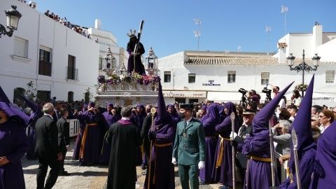 La idea fue desde el principio, y así lo ofreció la hermandad, que los abuelos de la residencia municipal de ancianos tuvieran la oportunidad de ver a Jesús Nazareno y a María Santísima de la Amargura a pocos metros de ellos. Una propuesta que se acogió por Servicios Sociales desde el principio con mucha alegría y que con la colaboración de la Policía Local, de Protección Civil, del personal de la residencia y de otras delegaciones municipales, ha salido adelante. Eran las siete y cuarto de la mañana cuando empezaba a vivirse ese momento tan emocionante, que no se repetía desde hacía 36 años, y que no solo ha provocado lágrimas en las caras de los abuelos, que han podido disfrutar del Señor de Rota y la virgen muy cerca, sino también, dentro del cortejo que a cara descubierta se han mostrado especialmente emocionados. Además, la hermandad ha hecho todo lo posible para que, a medida que iba realizando su estación de penitencia, parar o estar unos minutos sobre el mismo sitio meciendo los pasos ante un enfermo o algún abuelo. Y es que esta era una salida procesional que quería tener muy en cuenta a quienes padecen alguna enfermedad, para que Jesús los reconforte, y a los mayores que han sido los valedores de que esta devoción por el Nazareno haya pasado de generación en generación en Rota.