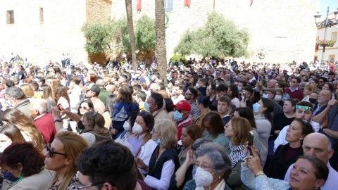 No han sido los únicos momentos especiales de esta larga noche; también se ha vivido con las saetas dedicadas a Jesús y María por las ganadoras del XL Concurso de Saetas de la Peña Rociera Roteña, que han cantado sus plegarias en una plaza de San Roque que también ha estado llena.