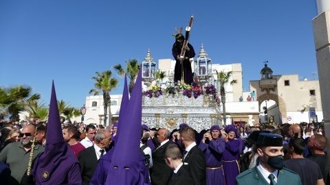 Sin duda, lo mejor de la Madrugá de Rota en esta Semana Santa, tras dos años sin poder celebrarla con pasos en la calle, ha sido que Nuestro Padre Jesús Nazareno y María Santísima de la Amargura hayan podido estar en la calle. Ese ha sido el regalo que muchos cofrades esperaban porque la devoción por el que tiene los honores de Señor de Rota desde 2008, es inmensa. Fruto de ello, es que desde que a las dos de la madrugada se abrieran las puertas de la parroquia de Nuestra Señora de la O, y hasta casi la una de la tarde de este Viernes Santo, cuando se han cerrado con los titulares ya dentro, la hermandad morada no ha estado sola.