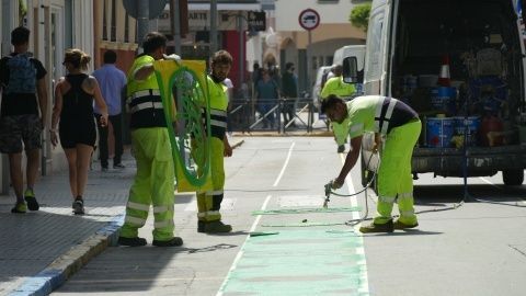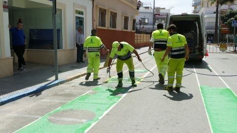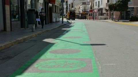 [Img #165591]Para que todos los roteños se vayan haciendo a la idea, operarios de una empresa especializada en pintura vial están pintando tramos de varios colores que señalizan el futuro uso de cada parte. Por ejemplo, el tramo pintado de  verde será el espacio dedicado a los árboles, parterres y mobiliario urbano (bancos, papeleras, etc.); las zonas pintadas de color amarillo indican que es acerado compatible con veladores de terrazas, jardinería y mobiliario; y la pintada de azul, que esta mañana todavía no estaba terminada, será el espacio para que circule el peatón en el que se garantiza 1,80 metros para asegurar la accesibilidad. La zona que se pintará de rojo será el futuro  carril bici, y el resto calzada. Todo será una plataforma única, es decir, mismo diseño que ya tienen plaza San Roque, Higuereta o plaza Jesús Nazareno, facilitando así la movilidad y reduciendo barreras arquitectónicas que supone el acerado en desnivel.  Además, este pintado se completará con la colocación de jardineras en las zonas verdes proyectadas en la avenida, así como bolardos para delimitar las nuevas zonas peatonales.