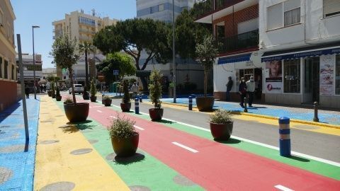 Exactamente así, aunque sin el colorido de la calzada, es como quedará esta avenida tras las obras de remodelación que se empezarán tras el verano. La calzada para entonces, quedará como una plataforma única, es decir, acerado y carretera al mismo nivel y color, con un diseño similar al de otras calles cercanas como Higuereta, plaza San Roque o plaza Jesús Nazareno.