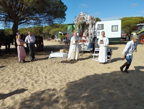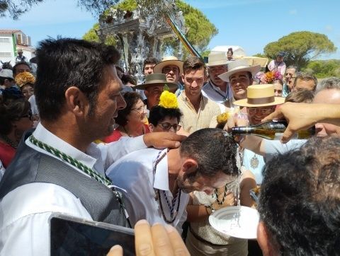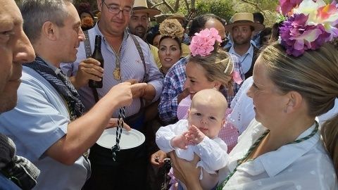 [Img #169675]Hoy en concreto además, se ha llevado a cabo tras el rezo del Ángelus, el tradicional bautizo de rocieros que por primera vez hacen el camino y han sido bautizados por el párroco del Carmen, director espiritual de la Hermandad del Rocío, Roberto Romero, acompañado por el hermano mayor, Rafael Caraballo, y los padrinos del bautizado. Son momentos especiales que solo quien es rociero sabe de su trascendencia interior.