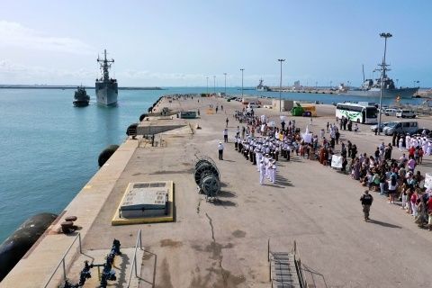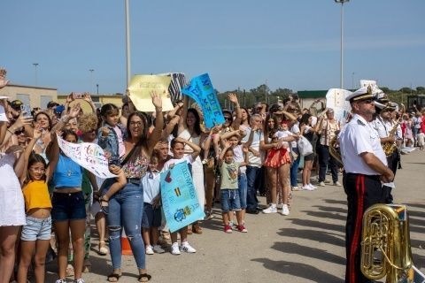 La dotación de la fragata "Canarias" ha cumplido su misión con éxito gracias también al apoyo de los familiares, que dejaron atrás hace cuatro meses y medio, con los que hoy se han reencontrado entre besos, abrazos y carteles de bienvenida.