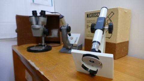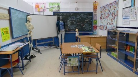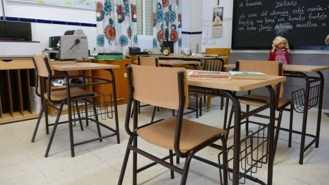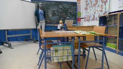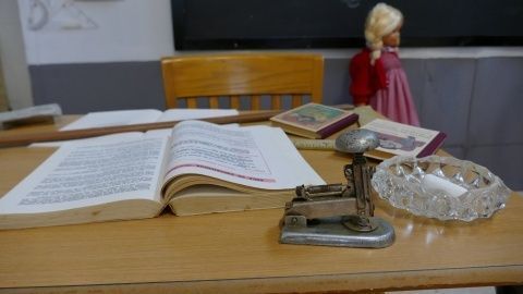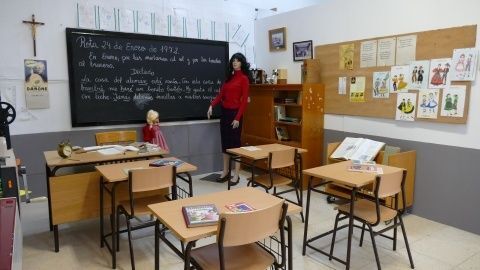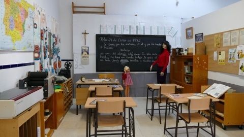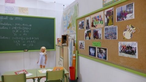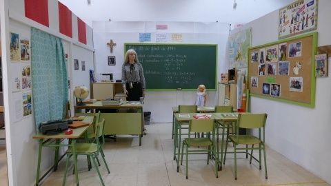 La transformación de las aulas de los 70 a una actual, recreada en una exposición del colegio Luis Ponce