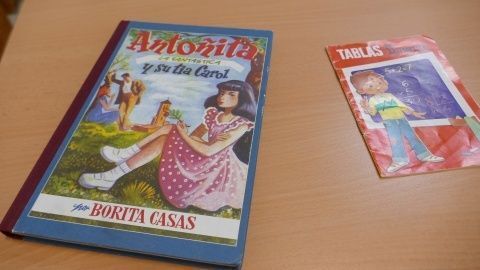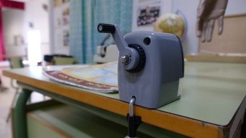 Gracias a que el colegio tenía guardado algunos muebles originales de los 70 y de los 90, libros y material escolar que se usaba en la época, han podido recrear con bastante fidelidad qué encontraban los estudiantes de hace 50 años en sus clases. Una forma de mirar atrás y ver que no había pizarras digitales sino un simple tablón negro o verde, según la época, en el que solo se pintaba con tizas; que para ver imágenes lo más avanzado eran las dispositivas o las proyecciones en 8mm; que si se quería escuchar un audio no se tiraba de móvil sino de cassettes, que la cartilla Micho, los cuadernillos Rubio o el Atlas Santillana formaban parte del atrezo normal de una clase, que en los 70 los profesores tenían una vara de madera que les daba autoridad o que los profesores y los niños vestían de forma muy diferente a como lo hacen ahora. Todo eso, ha quedado reflejado en el trabajo que ha hecho este colegio por honrar de alguna forma, la memoria y trayectoria de un centro educativo por el que han pasado miles de roteños.