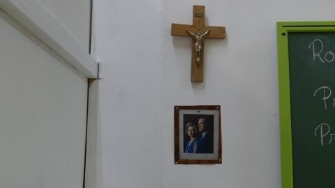 Que todas las clases estuvieran presididas por un crucifico y una foto de los que hoy son reyes eméritos, Don Juan Carlos y Doña Sofía, que el profesor tuviera sobre su mesa un cenicero porque se le permitía fumar, que máquinas como fotocopiadoras funcionaran moviendo una manivela o el uso de utensilio que hoy ni se conocen, es un viaje al pasado que el colegio Luis Ponce de León ha querido recrear para celebrar el 50 aniversario de este centro educativo en Rota.