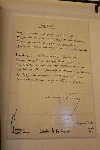 En la noche de hoy, martes, el Foro Plural "Torre de la Merced" ha incluido entre su pasaje poético por las calles de Rota a Benjamín Prado. Un homenaje que culminó con el descubrimiento del azulejo con el poema “Soy Rota” en la calle Constitución. Al evento acudieron amigos y grandes poetas como Luis García Montero o Felipe Benítez, quien presentó al homenajeado con un poema titulado “El Benja”.