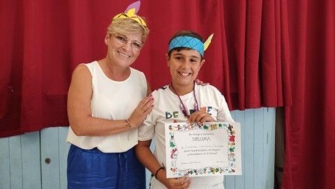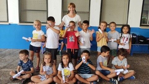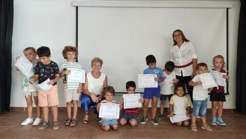 El último día de "El Recreo", el programa municipal que ayuda a la conciliación de la vida laboral y familiar ha terminado con el fin del mes de agosto y desde la delegación de Igualdad se llevó a cabo una entrega de diplomas a los más pequeños como agradecimiento y a modo de clausura de esta escuela de verano.