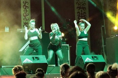 Las damas del Rosario y pajes en primera fila, y muchos jóvenes y ciudadanos casi llenaron esta céntrica plaza que durante un par de horas pudo bailar al ritmo de la música urbana de este trío de artistas ofreció entregado al público que bailó y disfrutó.