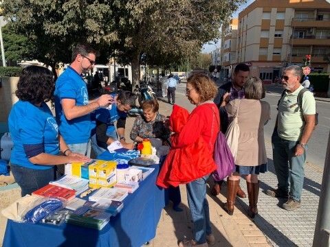 Reparto de folletos, material promocional y la colocación de lazos de color azul, que identifican este día, han centrado parte de la actividad que se ha completado con controles de azúcar en sangre a los ciudadanos que han querido acercarse y medir su nivel de glucosa.