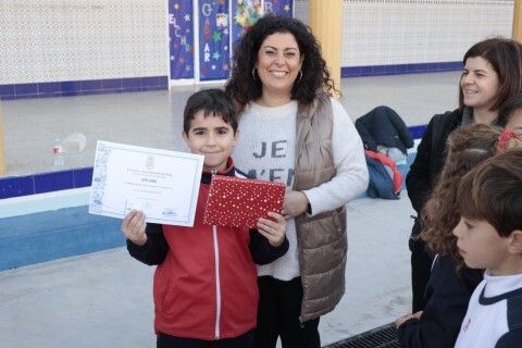 Pero para agradecer la participación en este certamen, a lo largo de toda esta mañana, Laura Almisas ha entregado un diploma y libros a todos los finalistas que han sido Rubén García González y Candela Gálvez Fernández, finalistas del colegio Luis Ponce de León; Pablo Benítez Aguilera, finalista del colegio Pedro Antonio de Alarcón; Zaida Ruiz-Mateos Ramos, finalista de San José de Calasanz junto con Celia Letrán Izquierdo, que además ha sido la ganadora; Inés García Sánchez, que quedó finalista en el colegio Pozo Nuevo; Mauro Bernal Herves, finalista en el colegio Nuestra Señora del Rosario; Alia Bernal Martínez, finalista en el colegio Nuestra Señora del Perpetuo Socorro; y Mario Macías Domínguez y María de las Nieves Sánchez Herrera, como finalistas del CDPEE "Pilar Varo".