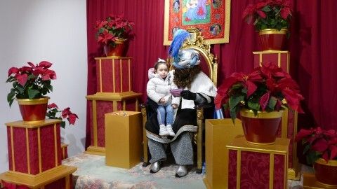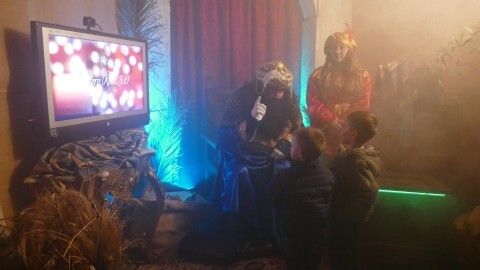 El Cartero estuvo también en los salones parroquiales de la calle Luis Vázquez, en un encuentro con los pequeños que va algo más allá gracias a las nuevas tecnologías, donde los niños pueden incluso intercambiar algunas palabras con Melchor, Gaspar y Baltasar a través de un plasma, y descubrir que saben muchas cosas de su comportamiento, notas del cole, lista de regalos, etc. Es un escenario más íntimo, ya que pasan de uno en uno a una sala donde solo están ellos con el Cartero y allí se propicia un encuentro 3.0 con los Reyes que organiza la Hermandad del Santo Entierro y que cada año tiene mucho tirón. Precisamente por eso, en esta ocasión solo se ha admitido cita previa para una mejor organización y evitar colas de varias horas que hacían muy pesada la espera.