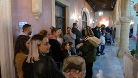 Tras un pasacalles que estuvo amenazado por la lluvia, pero que finalmente, se pudo desarrollar sin problemas pese a la hora de retraso acordada, el Cartero Real se dirigió al Castillo de Luna donde desde la habitual sala de exposiciones, esta vez, decorada con su trono para la ocasión, empezó a recibir a todos los niños que hicieron cola hasta pasadas las nueve de la noche.