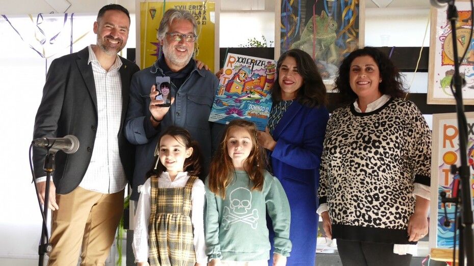 Pasadas las tres de la tarde llegaba el momento central de descubrir el cartel anunciador de la XXI Eriza Popular. Dado que la autora, Elena Hermida Medina, se encontraba en Cataluña donde trabaja, han sido sus padres, Armando y Carmen, los que han tenido el honor de descubrir el cartel que la propia diseñadora ha podido ver a través de videollamada, agradeciendo a la peña la confianza depositada en ella y el deseo de que le gustara a la gente asegurando que está hecho con mucho cariño. Elena Hermida ha deseado un buen Carnaval a los roteños sintiendo no poder estar presente.