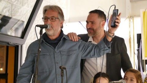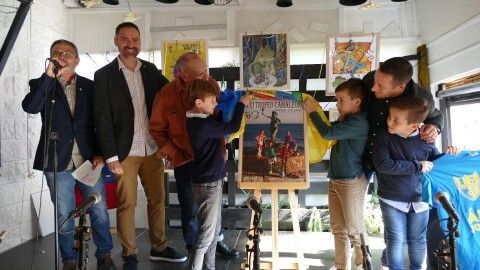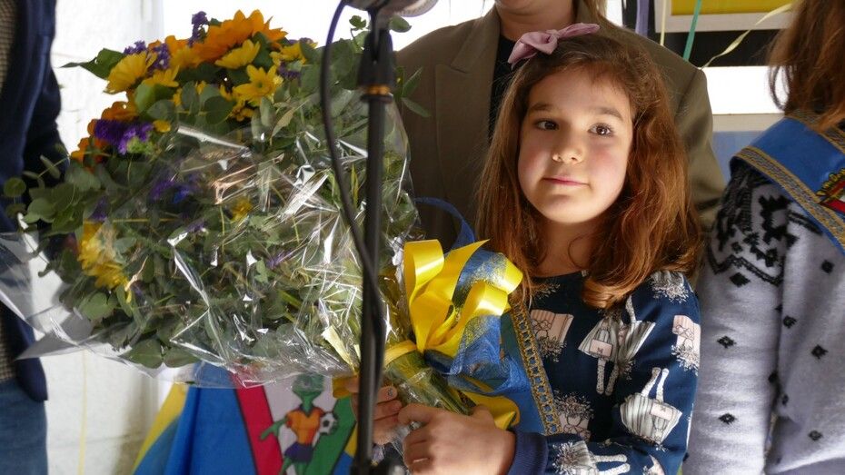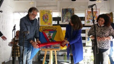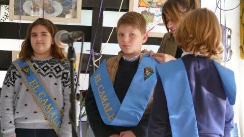 Los padres de la autora recibían un cartel enmarcado de manos del presidente de la peña "El Camaleón", Miguel Ángel Cebrián, y de la delegada de Fiestas, Laura Almisas, quien a su vez daba las gracias a la autora y la felicitaba por un trabajo que ha encantado a la junta directiva.
