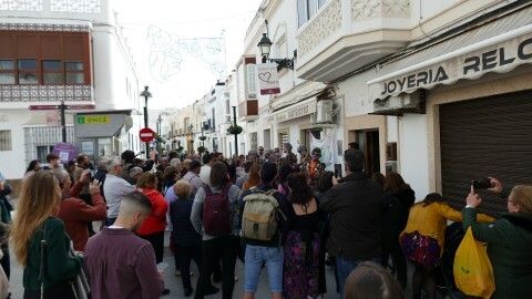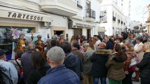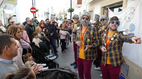 Más allá de los gustos de unos y otros, que de todo hay, es inapelable que son los roteños y roteñas que trabajan meses antes en escribir letras y ensayar coplas los que dan vida a los carnavales en la calle. Sin ellos, la fiesta no tendría sentido y eso se ha empezado a notar ya desde este mediodía, donde a partir de las 13.30 horas se puede escuchar a chirigotas, comparsas y romanceros sobre todo, por la Mina, calle carnavalera por antonomasia donde las agrupaciones se van dispersando creando el escenario a pie de calle perfecto para que un corrillo de espectadores, da igual si muchos o pocos, los arropen en su actuación.