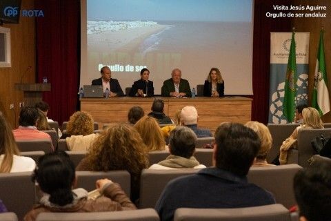 Con motivo de la cercanía del Día de Andalucía, que se celebra el 28 de febrero, y de los actos que se organizan con respecto a esta fecha, en la tarde de ayer, el presidente del Parlamento andaluz, Jesús Aguirre, y la vicepresidenta Ana Mestre, visitaron Rota donde mantuvieron un encuentro con simpatizantes del PP, representantes de asociaciones deportivas, culturales de mujeres y sociales de la localidad y ciudadanos a título personal. La candidata a la alcaldía de Rota, Auxiliadora Izquierdo, y el presidente del partido a nivel local, Óscar Curtido, dieron la bienvenida a todos los asistentes, a los que agradecieron su presencia en el auditorio "Severiano Alonso" y en especial, a los dos compañeros de partido por estar en esta cita.