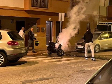 Arde una moto aparcada en la vía pública y varios vecinos inician su extinción