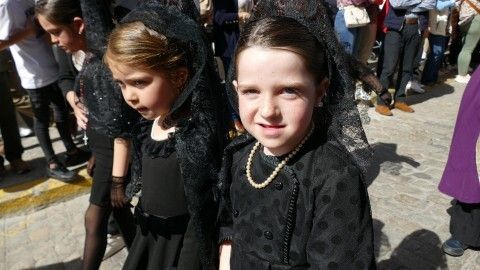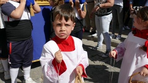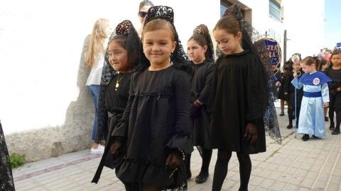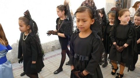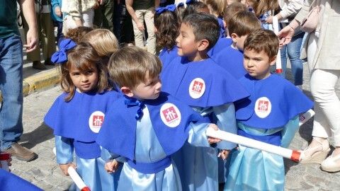 La expectación y las ganas de ver a los más pequeños, en especial, por parte de los familiares, pero también ciudadanos en general, se ha dejado notar este mediodía con la salida de la procesión infantil que organiza cada año el colegio Salesianos coincidiendo con el Viernes de Dolores.