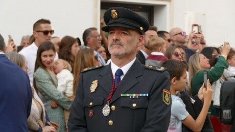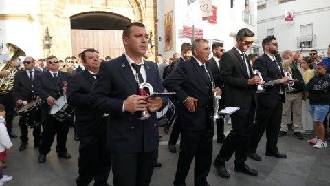 La banda de música "San Salvador" de Las Cabezas de San Juan ha sido la encargada poner el acompañamiento musical a un paso, escoltado de nuevo por agentes de la Policía Nacional socios de ASACRO, que se ha lucido llevando a Nuestra Señora de los Dolores y al Cristo de la Caridad por los rincones de una villa que también espera con ganas la Madrugá que comenzará en breve.