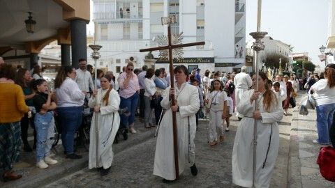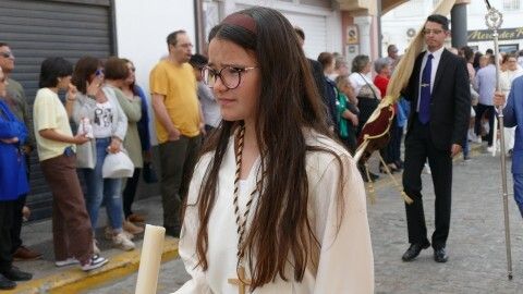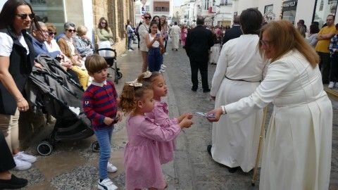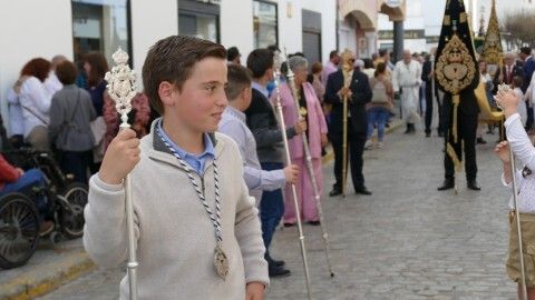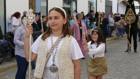 Se ha puesto fin a una semana intensa con un Domingo de Resurrección diferente, donde Jesús Resucitado ha estado acompañado por un cortejo en el que como es habitual, destaca la presencia de niños vestidos de calle agitando campanitas en señal del júbilo con el que se celebra esta jornada. A ellos se han sumado hermanos de la Hermandad del Amor luciendo la túnica, sin antifaz, con varas e insignias, algunos cirios en manos de los pequeños, y una representación del Consejo Local de Hermandades y Cofradías.