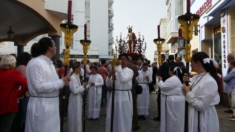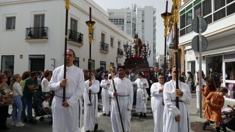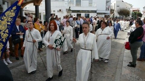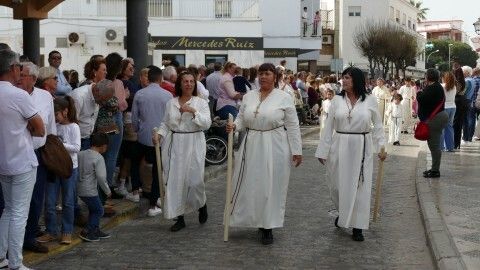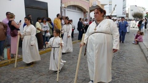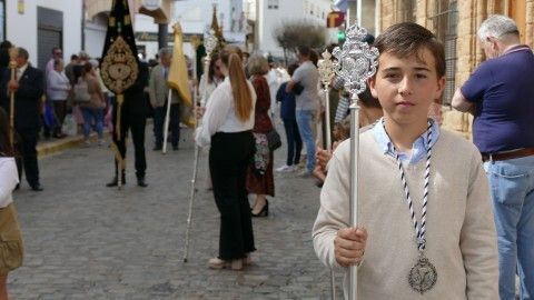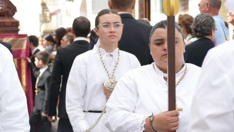 El cambio ha tenido algunas ventajas, como que los cargadores del Santísimo Cristo del Amor y las cargadoras de Nuestra Señora de la Esperanza del Calvario, que se han ido turnando a lo largo del recorrido, no hayan tenido que soportar las temperaturas altas que suelen acompañar a este día y que suponen una dificultad añadida al esfuerzo físico que realizan. Ese, de hecho, era el motivo principal del cambio de hora, evitar algún desmayo como ocurría el año pasado en el seno de la cuadrilla, aunque conllevaba la duda de saber qué acogida tendría en la calle. Varios factores se mostraban en contra ante esta modificación: el cansancio acumulado de una Semana Santa intensa, que el grueso de turistas ya se ha marchado y que al día siguiente es laborable y además se reanudan las clases, lo que obliga a muchos estudiantes universitarios a marcharse y a los más pequeños a acostarse antes. Pero al final, los roteños han acompañado a Jesús Resucitado y en la salida, a las cuatro y media de la tarde, la calle María Auxiliadora se mostraba concurrida. Así lo ha he estado toda la zona centro, sin aglomeraciones y muy lejos de bullicio en la calle, pero arropado.