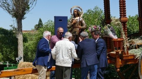 [Img #190584]En el acto, se ha contado con la presencia del cura párroco y asistente eclesiástico de la hermandad, José Arjona Gil, para la bendición de la imagen restaurada a la que se le ha pedido la necesaria lluvia que hace falta para el campo tras un invierno muy seco.  También ha estado el presidente del Consejo Local de Hermandades y Cofradías, José Manuel Sánchez Peña, que ha felicitado a la hermandad por el acto y por volver a tener a San Isidro en el Centro de la Mayetería, deseando que el 14 de mayo se viva una romería llena de ambiente como es habitual, y esperando que la lluvia llegue, aunque lo haga respetando el día del patrón.