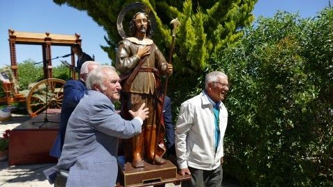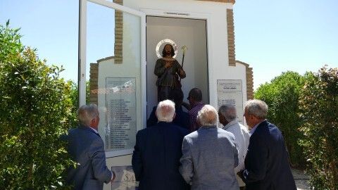 [Img #190587]La imagen del santo patrón que está situada en la hornacina junto al azulejo de los pregoneros de la romería de San Isidro ha sido restaurada por fin, tras varios años, y hoy ha vuelto después de meses en manos del roteño Manuel Benítez Reyes que se ha encargado de restaurarla. Esta talla de San Isidro, la segunda que tuvo la hermandad, luce de nuevo en ese pequeño altar hasta donde la han llevado a pulso hermanos de la hermandad. Desde hoy, el patrón de los agricultores vuelve a presidir el Centro de la Mayetería, unas instalaciones municipales dedicadas precisamente a recordar la vida del mayeto, del agricultor roteño.