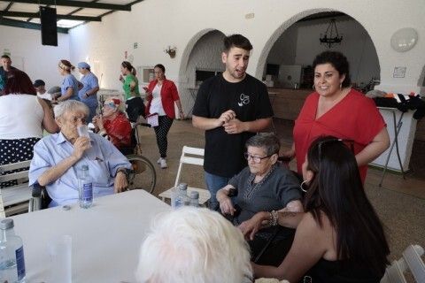 Además de visitar las calles engalanadas del recinto ferial en el tren turístico, los abuelos, junto con el personal de la residencia y familiares, han compartido un almuerzo en el pabellón municipal.
