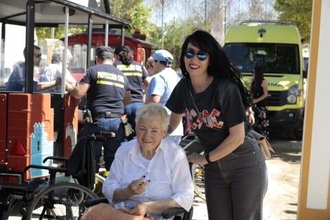 Organizado por la delegación de Servicios Sociales, se ha previsto que estos mayores tuvieran su rato de convivencia en un ambiente feriante, acompañados por la delegada municipal de Servicios Sociales, Luisa Fernández, que junto al delegado Pablo Gómez, ha acompañado a los abuelos en el inicio de esta actividad que comenzaba con el paseo en tren turístico desde la residencia al real, donde también han sido atendidos por la delegada de Fiestas, Laura Almisas.