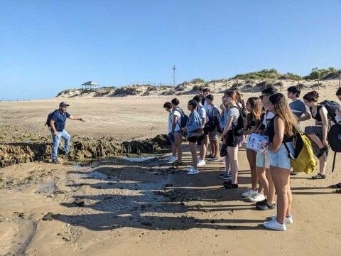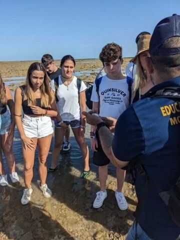 Una veintena de alumnos pudo disfrutar de esta experiencia de manos de un educador medioambiental perteneciente a la Asociación de Corraleros de Rota, que les explicó parte de la historia de Los Corrales, los utensilios que se usan para el despesque, les habló de algunas de las especies que se capturan con mayor frecuencia y del funcionamiento de estas construcciones que han usurpado el terreno al mar, para aprovechar las mareas en favor de la pesca.