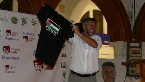 El candidato, antes de terminar, tuvo una referencia al pueblo saharaui y su lucha por la libertad, sacando una camiseta y dirigiéndose a una representación de la comunidad saharaui que estaba en el acto. Para ellos, el compromiso de luchar por su libertad.