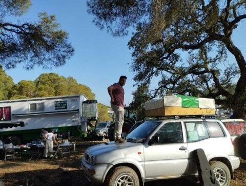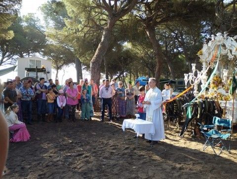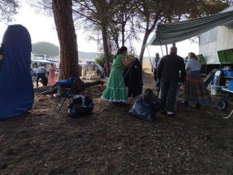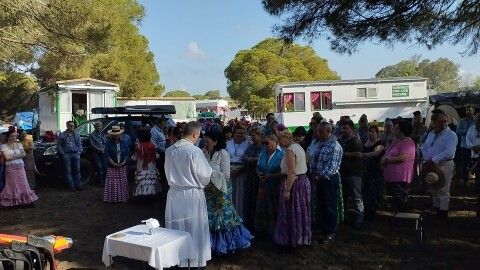 Esta mañana, sobre las 10.00 horas, y tras la eucaristía, los rocieros roteños recogian bártulos y emprendían de nuevo el camino hasta el Corral de Félix, donde este miércoles noche volverán a hacer parada en el camino. Se van sumando momentos y vivencias personales y otras compartidas, incluso acompañan a quienes celebran sus bodas de plata en pleno camino.