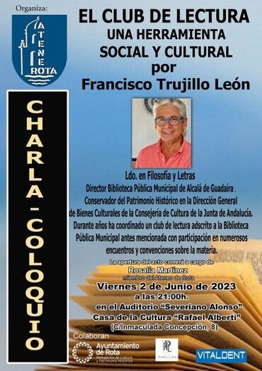 De cara al mes de junio que está a punto de comenzar, el Ateneo de Rota tiene prevista una agenda de actividades culturales en la que hay un poco de todo, desde fiesta convivencia a presentación de libros o charla coloquio. Citas que están abiertas a la participación de los ciudadanos que quieran acudir y que empezará este viernes, 2 de junio, a las 21.00 horas, con la charla coloquio bajo el título "El Club de Lectura, una herramienta social y cultural", que correrá a cargo de Francisco Trujillo León, licenciado en Filosofía y Letras. y director de la Biblioteca Pública Municipal de Alcalá de Guadaira.