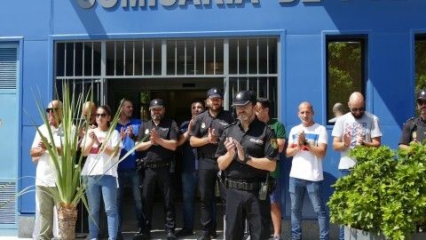 El minuto de silencio a las puertas de la comisaría de Rota ha acabado con un aplauso en memoria del compañero.