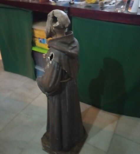 En un pequeño altar en la sede de "El Árbol", en la calle Zoilo Ruiz-Mateos, se expuso ayer un San Antonio que según cuenta la asociación "Getsemaní", encontró en 2002 abandonado en una cuba de la parroquia de Nuestra Señora de la O la familia Gutiérrez Peclesen. Durante casi 20 años, esta familia lo guardó y el pasado mes de enero de 2023 lo entregó a José Luis Delgado Caraballo, y con ello, a la asociación "Getsemaní" de la que ha pasado a formar parte para que se encargue de su guardia y custodia.