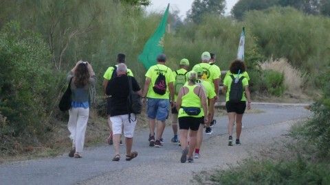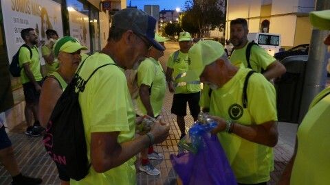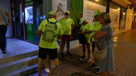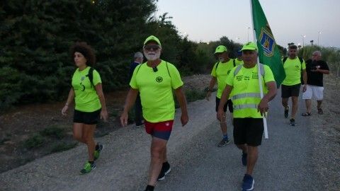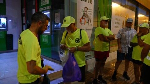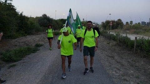 A las seis y media de la mañana se veían en la calle Rubén Darío, en la rotonda de los donantes, para hacer el reparto de caramelos, fruta y agua que servirán de avituallamiento para la larga caminata que les queda por delante. En realidad, andando serán unos 20,5 kilómetros, ya que hay zonas de autovía por las que tienen prohibido ir andando, por lo que hay tramos entre El Puerto de Santa María y el puente de La Pepa, que tendrán que hacerlo subidos en los tres coches que sirven de apoyo a los marchantes.