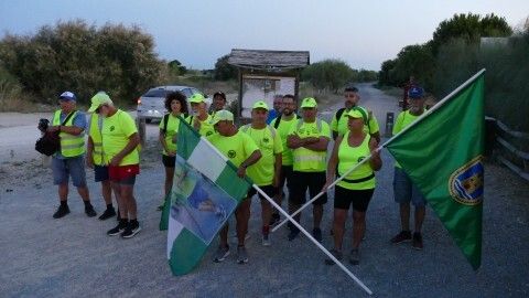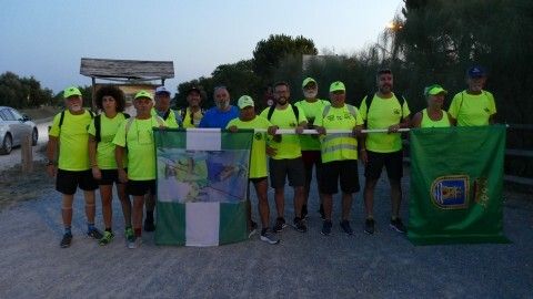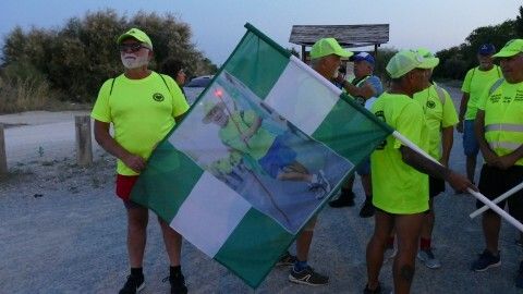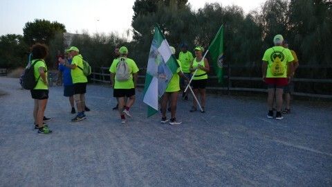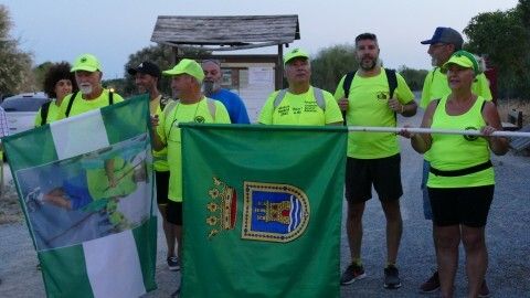 La mayor parte del recorrido la harán por la vía verde y carriles bici. Llaman la atención con sus camisetas fluorescentes y las banderas de Rota y la dedicada a su compañero fallecido Manuel González, ondeando para ser identificados. Les espera mucho calor, pero están preparados para el reto.
