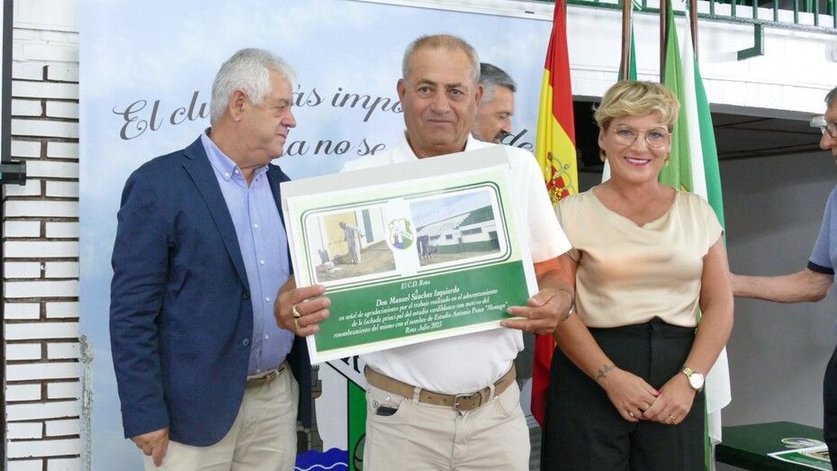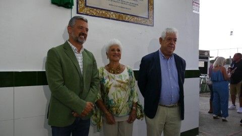 Tras esta primera parte del acto, los asistentes se trasladaron al estadio recién rotulado donde su viuda y el alcalde descubrieron el azulejo conmemorativo que refleja la nueva rotulación con la que a partir de ahora se conocerá al estadio del CD Rota.