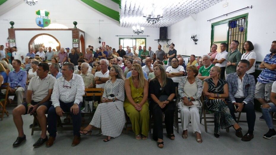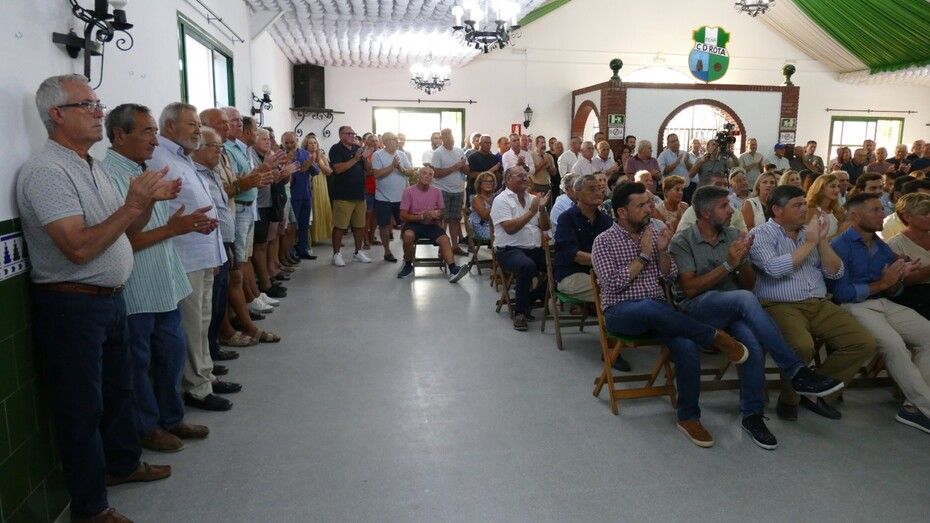 Desde que un grupo de aficionados pusiera sobre la mesa la posibilidad de cambiar el nombre del "Navarro Flores" para poner el de "Monago", ha pasado un año, 400 firmas avalando la propuesta, una asamblea extraordinaria que lo aprobó y un decreto del alcalde de Rota, Javier Ruiz, que ha permitido que se haga realidad. Era el presidente del Rota, Anselmo Rodríguez, el que daba las gracias al Ayuntamiento por aceptar la propuesta, y a su vez, a Juan Manuel Montes y Manuel Sánchez por involucrarse pidiendo ayuda a muchos colaboradores para que echaran un cable en el adecentamiento de una parte de la fachada y de la grada principal que estaba deteriorada para que este momento fuera más lucido.