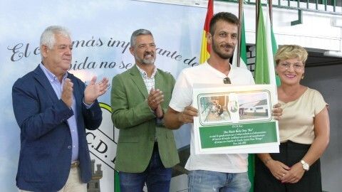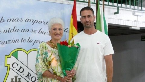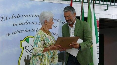 Tras destacar los méritos de Antonio "Monago", era su viuda, María del Águila Cariño Mantecón, la que recibía de manos del alcalde de Rota un recuerdo de este día especial en el que su marido será recordado para siempre dando nombre al estadio de un club por el que se desvivió.