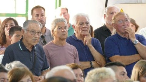 Jugadores y ex jugadores, directivos actuales y de épocas pasadas, miembros de la Corporación municipal y representantes de algunas entidades deportivas han acudido en la tarde de este jueves al acto de la nueva rotulación del estadio en el que Antonio Pazos "Monago" estaba representado a través de su familia.