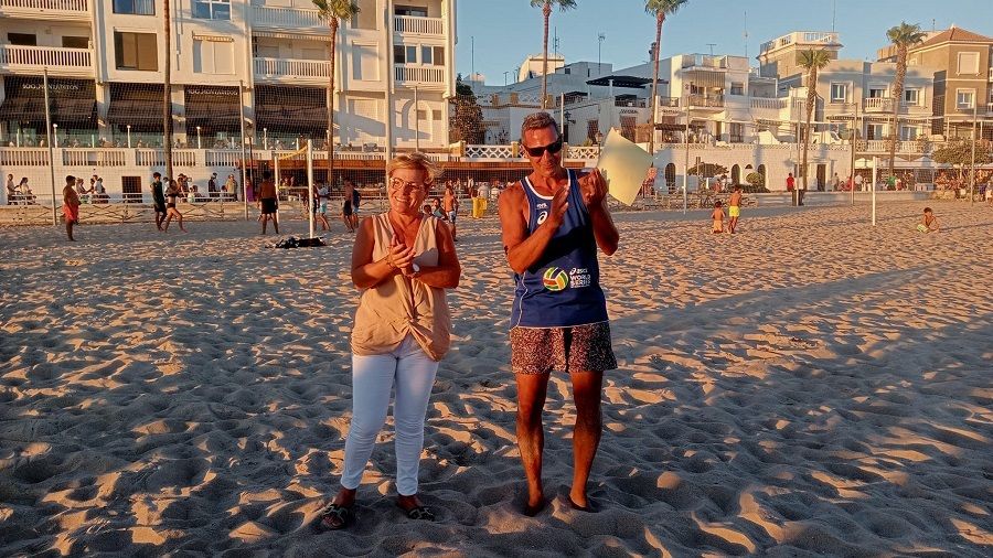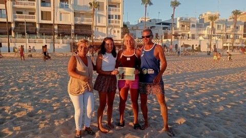 La delegada de Deportes, Luisa Fernández, junto con representantes del Club de Voleibol Roteño, participó en la entrega de premios de este campeonato que congregó a un total de 35 parejas, y 75 participantes procedentes de distintos puntos del país como Badajoz, Chiclana, Sevilla, Granada, Málaga, Huelva y de Rota.