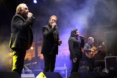A las seis de la tarde ya había fans del mítico grupo de sevillanas esperando a las puertas del recinto que se acotó para ofrecer una noche de sevillanas, baladas y buena música. Desde Chiclana, Granada, Córdoba, Jerez, Trebujena, San Fernando, Chipiona o Sevilla por citar solo algunos puntos, vinieron ayer seguidores que se fueron felices de poder ver en directo a estos cuatro roteños que durante 40 años han estado sobre el escenario con una trayectoria musical impecable.