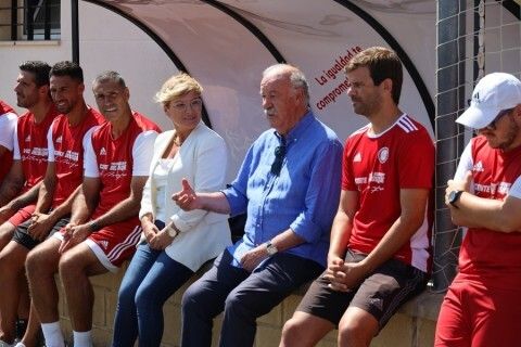 La delegada de Deportes, Luisa Fernández, dio ayer la bienvenida y acompañó a Vicente del Bosque, en la visita que ha realizado a este campus de verano, en la que el seleccionador nacional de fútbol de España y campeón del Mundo comaprtió un rato de charla con los participantes contestando a todas sus preguntas.