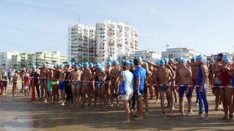 Con un calor sofocante que ya se notaba a primera hora de la mañana, los primeros en salir a nadar 2.000 metros de distancia han sido los inscritos desde las categorías junior a master 70. Unos 49 minutos tardaba el último en llegar a meta en completar el trazado, para dar paso a las categorías infantil y alevín tanto masculino como femenino, que han sido los que pasadas las once de la mañana, se lanzaban al agua vitoreados y animados por familiares y amigos o compañeros de club que se han dejado notar aplaudiendo y dando ambiente a una travesía que para ellos era de 1.000 y de 500 metros para los benjamines.