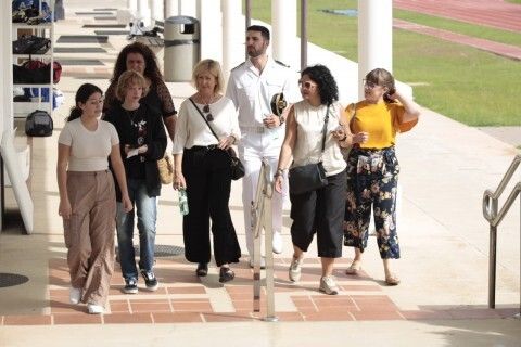 Las jóvenes han iniciado la jornada con un desayuno en el Club de Oficiales de la Marina española para continuar con un recorrido por la Base Naval, en el que pudieron conocer el instituto americano, donde compartieron experiencias con un grupo de alumnos norteamericanos, así como el muelle y la fragata ‘Numancia’, entre otros puntos.