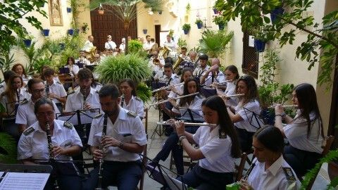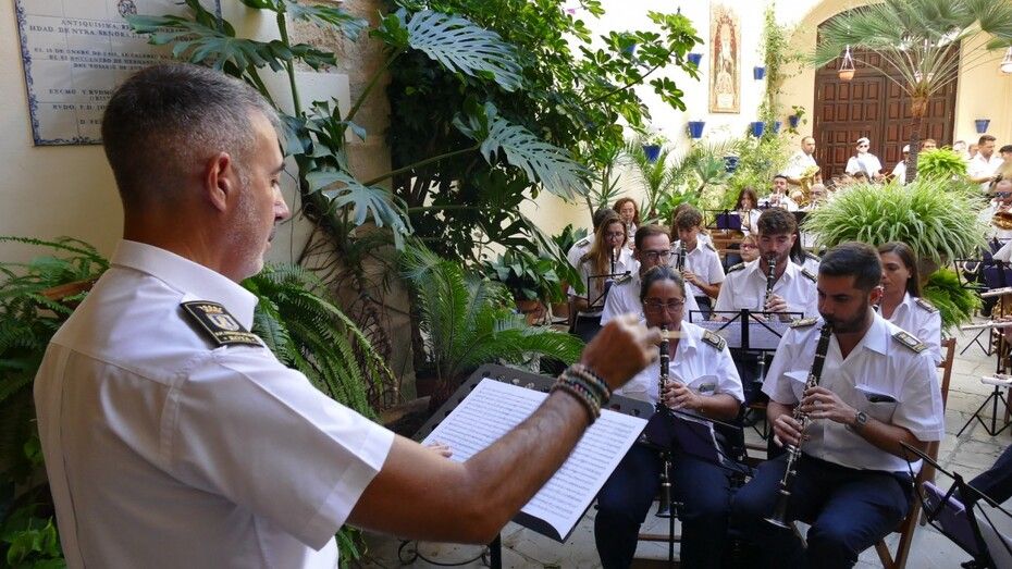 La banda municipal de música 'Maestro Enrique Galán' fue la encargada de poner los acordes musicales a un pregón que dejó claro el amor del pregonero a la patrona de una villa que en estos días se prepara para rendirle culto con actos religiosos y lúdicos.