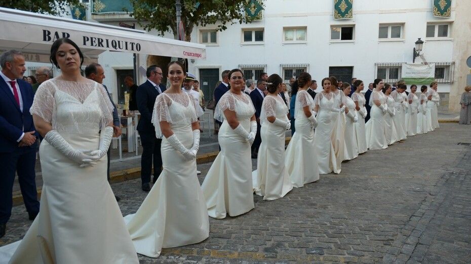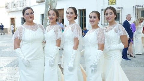 Ha sido un momento clave en la noche que ya vivía un previo lleno de expectación, ya que desde que las 17 damas del Rosario llegaron a la plaza de España sobre las 19.30 horas, se dejaba notar en el ambiente. Fotos, saludos y muchos nervios han formado parte de la tarde a la que se han sumado muchos ciudadanos movidos por la curiosidad de ver en primera persona el diseño de los vestidos que este año lucían las damas del Rosario.